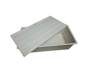 內(nèi)部尺寸依照氣衣氣面罩原包裝規(guī)格尺寸設(shè)計,四周折邊位置可以作為搬運把手,方便移動;底部設(shè)置有橡膠防滑墊,可以多層疊放,節(jié)省空間,不易滑落。