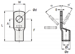 ? For bent terminals, specify α or α' (α max. 90° - α' maxi 45°)